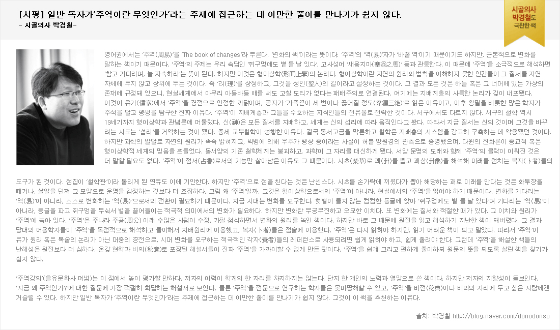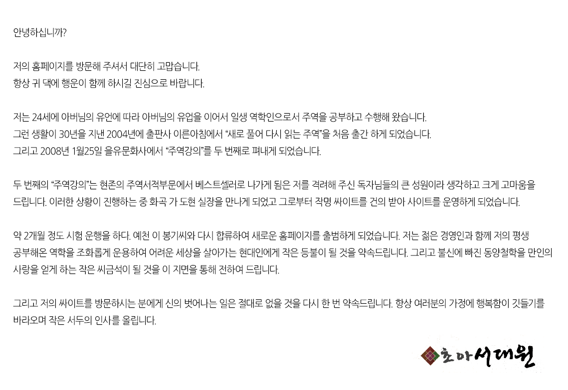 | 53 | "주역강의"서울대에 이어 경희대 한의대 교양도서100선에 선정 | 2009/03/31 | 604 |
